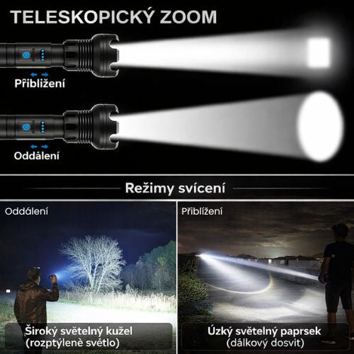 - 🔍 Nastavitelný zoom – široký rozptyl nebo úzký, soustředěný paprsek