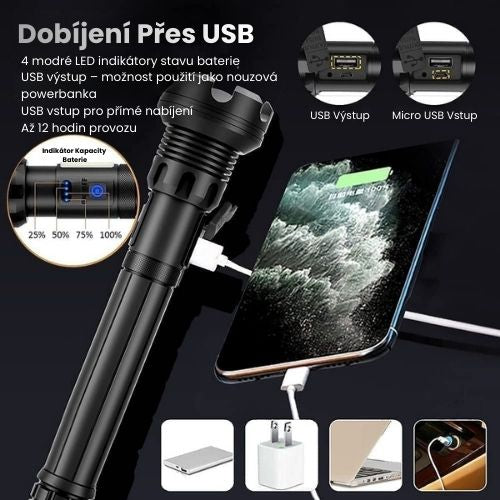🔋 Dobíjecí svítilna s funkcí powerbanky