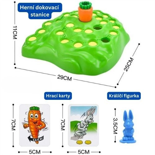 Barevné králičí figurky a poutavá herní deska okamžitě zaujmou malé hráče a pomohou vytvořit silnější emoční vazbu ke hře.