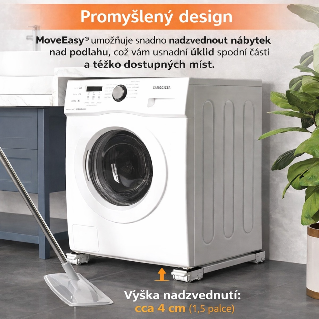 Stěhovací pomůcka MoveEasy® je ideální pro přesouvání těžkého nábytku, jako jsou pračka, sušička, skříně, postele, lednice a další. Je vybavena protiskluzovými podložkami, které zajišťují maximálně bezpečný pohyb nábytku.