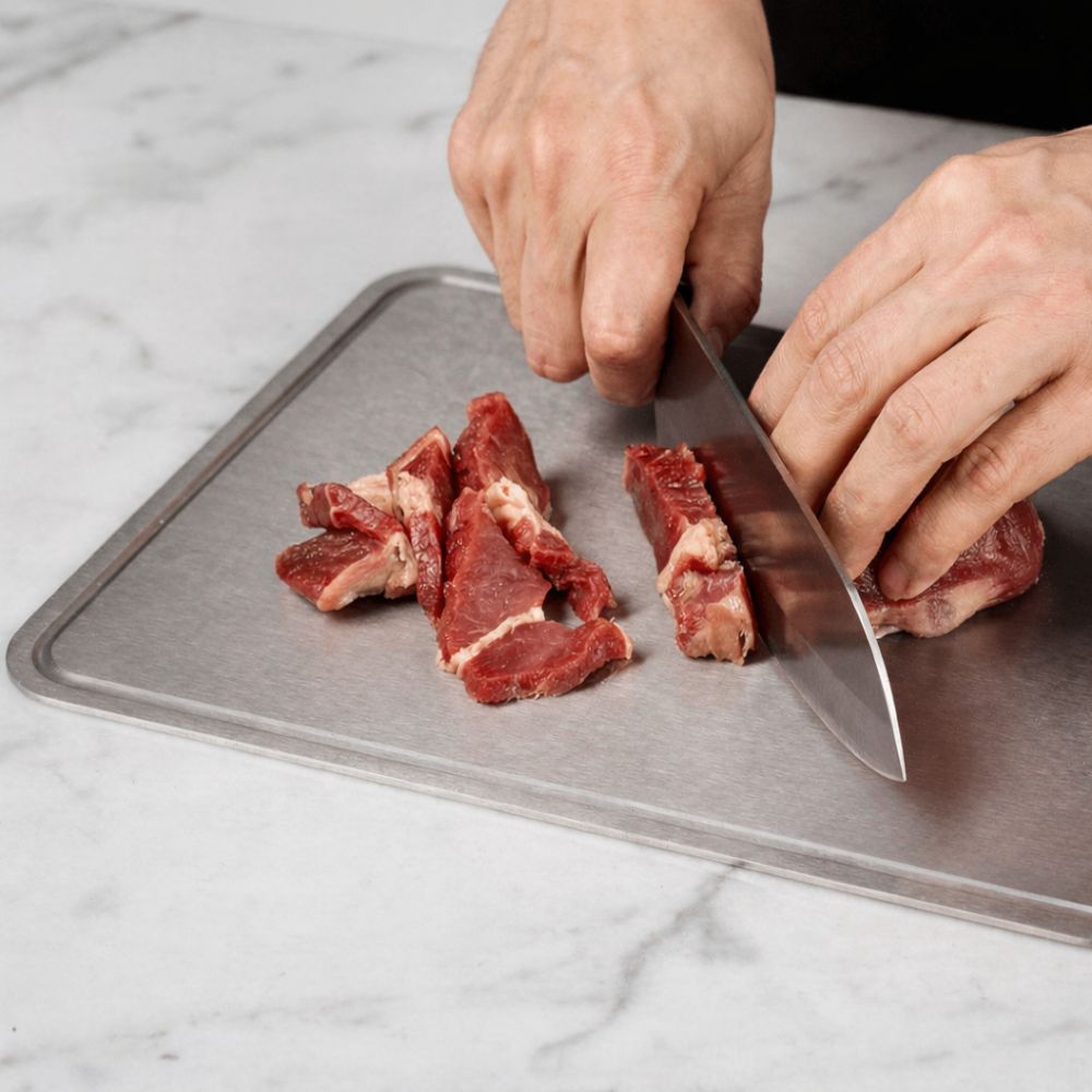 Krájecí prkénko TitaniumChef™ je vyrobeno z TA1 čistého titanu. Jeden pevný kus. Žádné lepidlo. Žádný povlak. Žádné skryté složky.