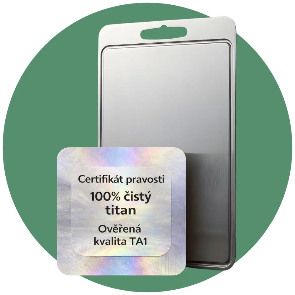 Titan je čistý kov, který přirozeně neobsahuje BPA, PVC ani jiné plasty. Protože na povrchu není žádný povlak ani vrstva, která by se mohla časem opotřebovat nebo rozpustit, neuvolňují se do potravin žádné chemické látky ani mikroplasty — ani při působení tepla, kyselin nebo při mytí v myčce nádobí.