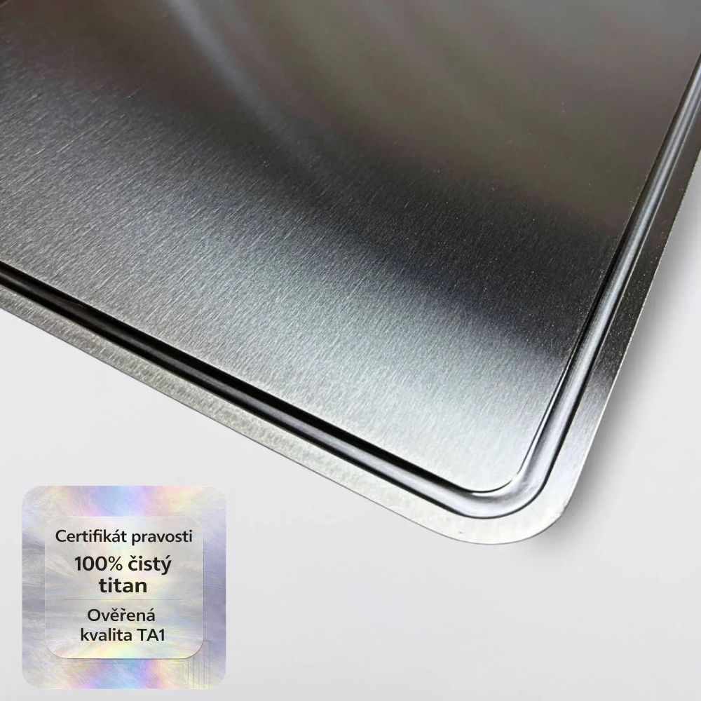 U čistého titanu získáte bezpečný a odolný povrch, který je přirozeně netoxický, nevyžaduje žádné povlaky a poskytuje jistotu při každodenním používání.