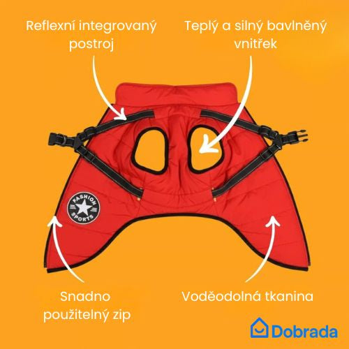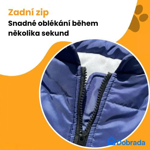 Zesílený zip zabraňuje pronikání studeného vzduchu a zůstává spolehlivý i u velmi aktivních psů.